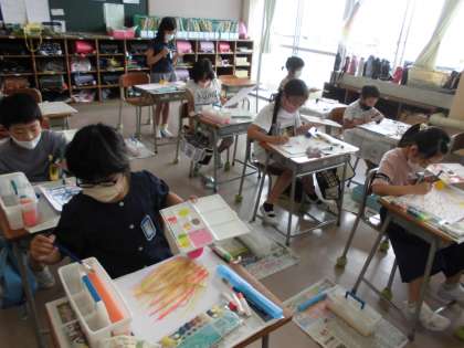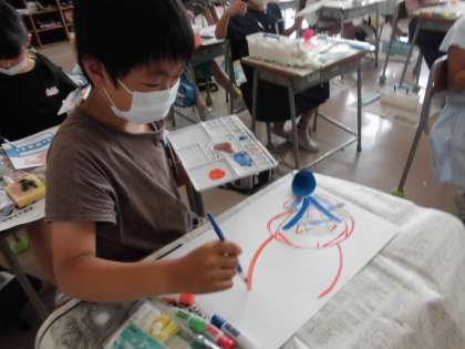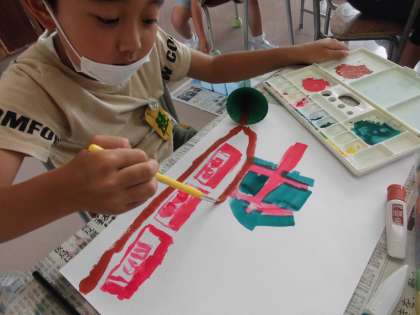 クラッカーから、絵の具+水+筆でつくったいい感じの色や形がとび出しています。