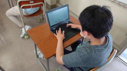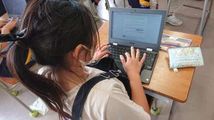 情報モラル講座のふりかえりを外部講師の先生にクロームブックで送信しています。こんなところにも「ペーパーレスを目指す社会」の進展が見られます。