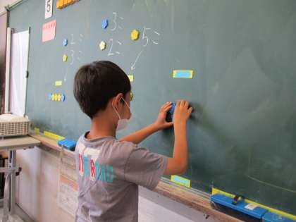友達の考えを聞いて、自分と同じ並べ方を発見したり、前に出て並べたりして楽しく学習しました。