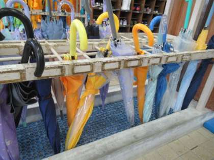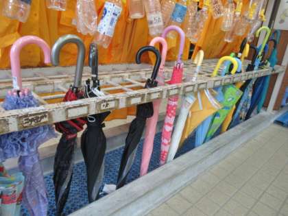 雨ガッパ・・・ 傘は、ちゃんと巻いてから立ててあります・・・