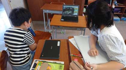 気象庁のホームページを見ながら、天気が変化する様子を観察しています。