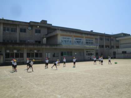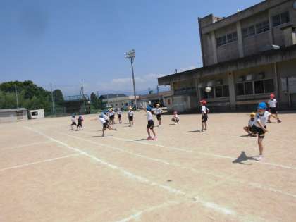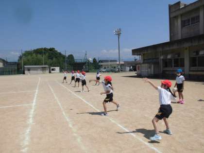 今日はソフトボール投げです。昨年の自分を超えようとがんばっています。