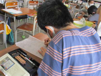 ぼくのクラスのT・Oさんが絵を描いています。T・Oさんは絵がとても上手です。ぼくも絵が描きたいです。