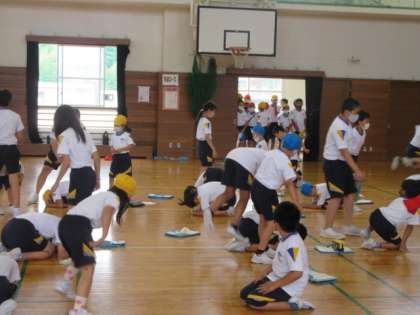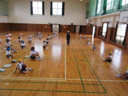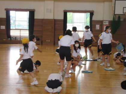 5年生と一緒に体育をしています。5年生さんありがとう。