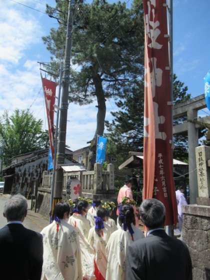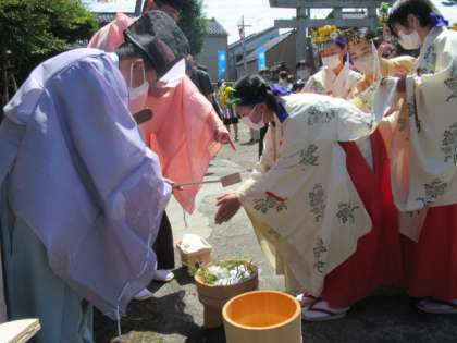 4日(土)に、神社の春祭りがありました。友達が「浦安の舞(扇の舞・鈴の舞)」を奉納しました。