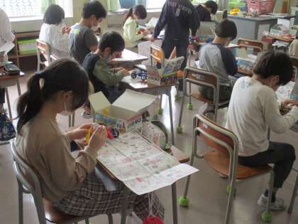 理科の学習で、電気について調べています。電池の向きを変えたり、つなぎ方を考えたりしながら、電気のはたらきについて学習しています。