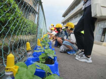 やはり・・・ 毎朝、「アサガオ」「野菜」の話題で盛り上がっています・・・