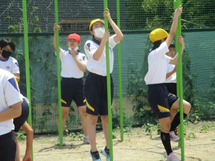 50m走の後は、鉄棒や雲梯をしながら走り幅跳びの踏切や着地を練習しました。