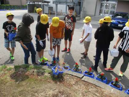 今年の花を植えました。6年生はベコニアです。心を込めてお世話しましょう。きれいな花がたくさん咲くといいですね。