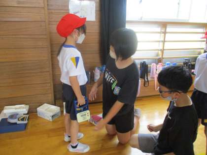 やり方を教えてあげています。見本を見せてあげるととても分かりやすいですね。1年生も頑張っていました。
