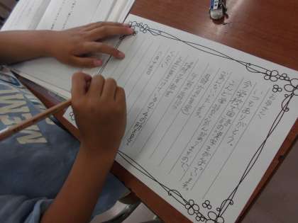学習参観の案内の手紙を書いています。どのように書くと、必要なことが伝わるか、気持ちが届くか考えて書いています。