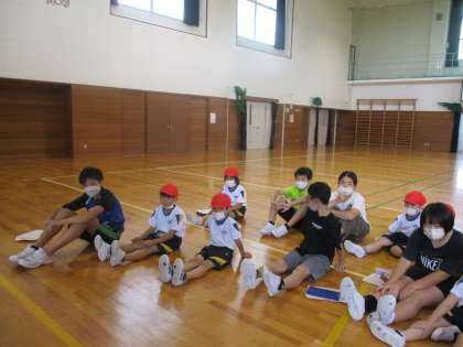 長座体前屈。計る前は一緒に柔軟体操!