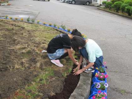 水やりをしたり、花苗を植えたり・・・
