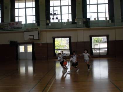4年生とドッジボールをしたり、バスケットボールをしたり・・・