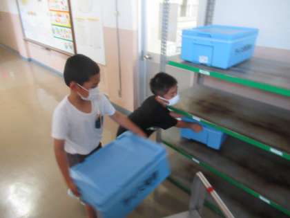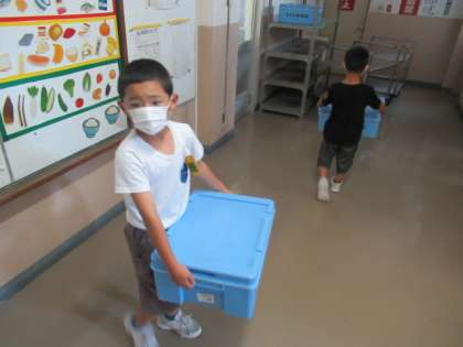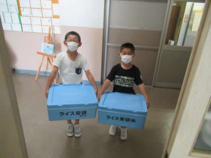 給食の片付け(2年生) 公開日 2022/06/17 更新日 2022/06/17 2年生 2年生2名が、ご飯ジャーを西館2Fから東館1Fの給食室まで運んでいました。 「ご飯ジャーは、各学年1箱なのに、なぜ2箱あるの?」と尋ねると 「1年生のも運んでいるよ」と。 「1年生の先生に、『もっていってね』と頼まれたの?」 「自分から運んでいるよ!」とのことでした。 体は、まだまだ小さいですが、心は、すでにでっかい2年生でした・・・