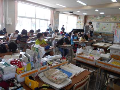 今日は外国語です。ALTの先生もみんなも緊張気味でした。宝物紹介カードを作ったり、ペアやお家の人に英語で紹介したりしました。