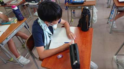 今日は、競吟(せりぎん)にチャレンジしました。「競吟」とは、決められた時間でどれだけ多くの俳句をつくることができるかを競い合います。「競吟王者」目指して一生懸命に考える子供たちです。