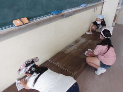 清掃からスタートです。自分で汚れを見付けて、進んで取り組む姿がハナマルです!