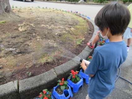 水やりを続ける子供たちあり、生き物に熱中する子供たちあり・・・