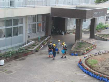 歩いて登校する子供たちは、もっと暑い、熱いことでしょう。