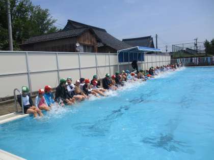 今日、1年生と6年生でプールに入りました。1年生と足をバタバタさせたり、おんぶをしてプールの中を回ったりしました。今年初めてのプールで、1年生も6年生もとても楽しそうでした。