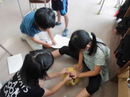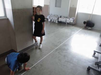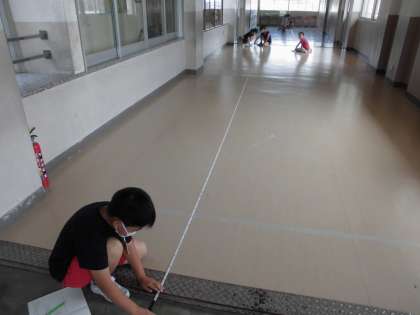 巻き尺を使って長さを測ります。巻き尺の扱いも手慣れてきました。