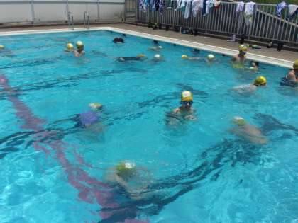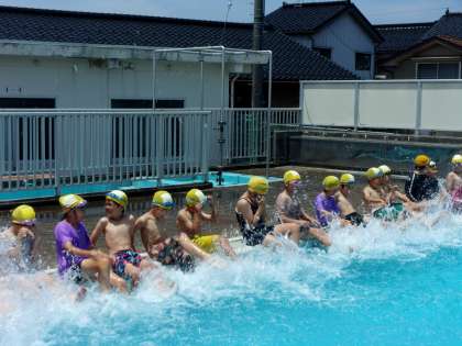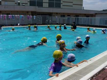 今日は、プール開きでした。今年度の初プールでした。プールの中を回ったり、水に潜ったりしました。
