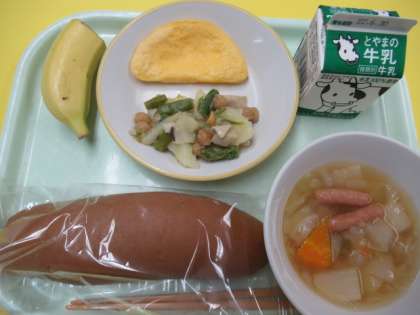 ・ココアコッペパン ・牛乳 ・チーズオムレツ