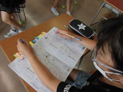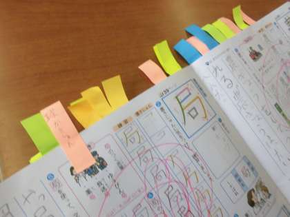 「書き順を間違えそうな字に付箋を付けて、復習しやすくしたよ」