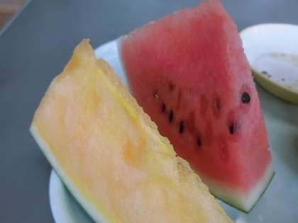 今日はなんと、黄色のすいかのおまけ付き!赤〜いすいかも黄色のすいかもとっても甘くておいしかったです!!
