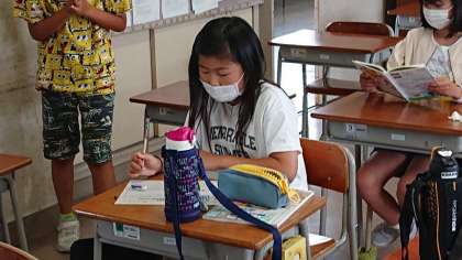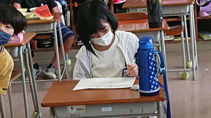 4限が終わった後、授業の振り返りを悩みながら記入している子がいました。今の授業をどんな風に振り返ろうか、一生懸命に考えているようです。自分が納得いくまで粘り強く考えようとする姿に、学習への意欲を感じました。「課題に取り組む」って・・・どういうことをいうんだろう。いろいろと考えさせられた今日の一コマでした。