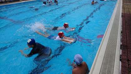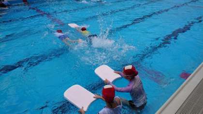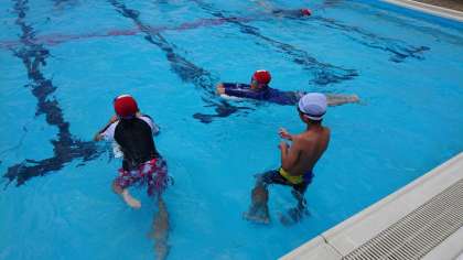 水泳の学習を行いました。練習時間が終わり、自由時間へ。各自が自由に水の中で活動します。プールでの子供たちを観察していると、友達と泳ぎの練習をしている子が。泳ぎが達者な子からアドバイスをもらいながら、練習していました。