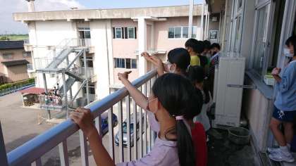 4年生は、今日から宿泊学習です。今朝、出発する4年生と先生方を、5年生の子供たちがお見送りしました。笑顔で見送る5年生。4年生のみなさん、学級の仲間とよりよい思い出をたくさんつくってきてね。