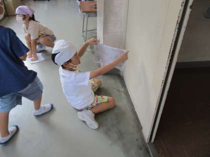 机の下や床の隅の方など、埃がたまりやすい場所を上手く見付けて、雑巾がけをしていました。