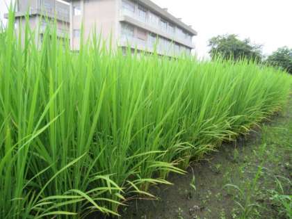 学校近くの田・・・稲が大きく生長しています