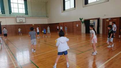 体育館でドッジボールを楽しむ子供たちです。元気いっぱいです!