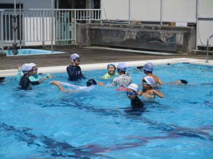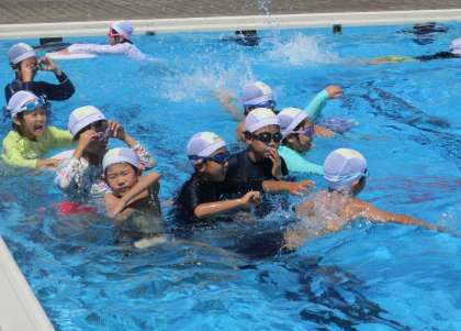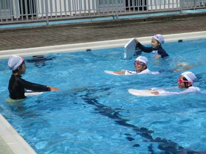 3年生 体育科 水泳 公開日 2022/07/13 更新日 2022/07/13 3年生 今日は5・6年生と一緒に入りました。先輩たちの泳ぎに刺激を受けた3年生です。みんなでプールの中を回ってできた、流れるプールも楽しかったですね。