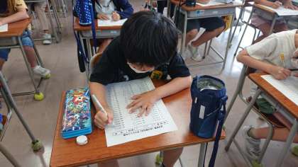 5年生は、「たし算(3)繰り上がりあり」と「かけ算九九」「わり算九九」の3つのテストを行いました。