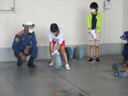 7月27日水曜日に水橋消防署に行きました。体験や、実験の見学など、楽しんで学べることがいっぱいありました。今日は、その中でもすごいと思ったものを2つご紹介します。