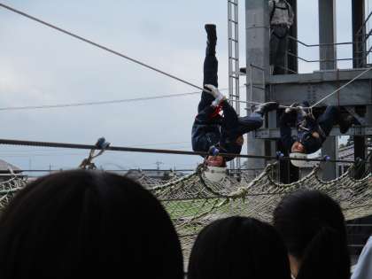 2つ目は、綱渡り訓練です。毎日訓練を重ねてやっている消防士さんは、なんと20mを5秒くらいで、渡っていました。とてもす速くて、すごいと思いました。もっと話したいことはありますが、今日はここまで。また学校で、お話しましょう。