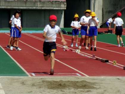 50M走、走り幅跳び、ソフトボール投げを練習しています。今日は暑い日だったので、水分補給もこまめに行います。