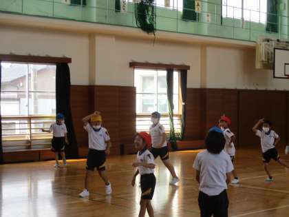 「海」をテーマにいろいろな生き物や物を体で表現しました。