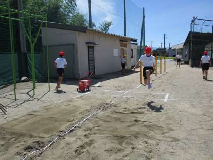 今日は、走り幅跳びとソフトボール投げを中心に練習しました。