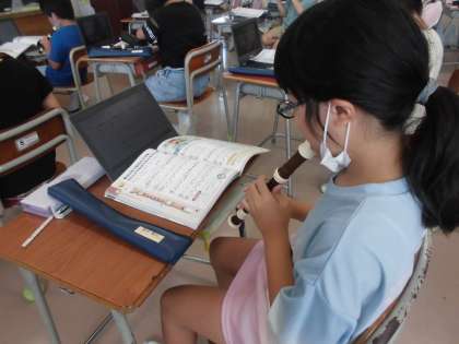 音楽です。 音楽会に向けて、歌ったりリコーダーを吹いたりしました。
