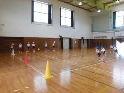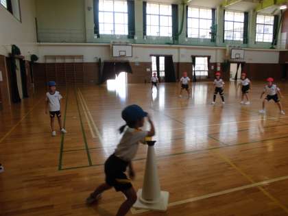 ハンドベースボールに取り組んでいます。ゲームに慣れ、盛り上がってきています。