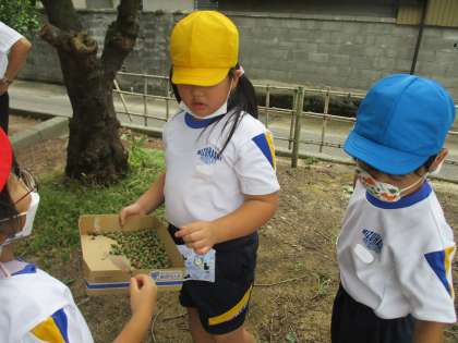 「天瀬の森」の虫や、落ちている実や葉に興味津々の子供たちでした。