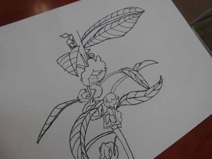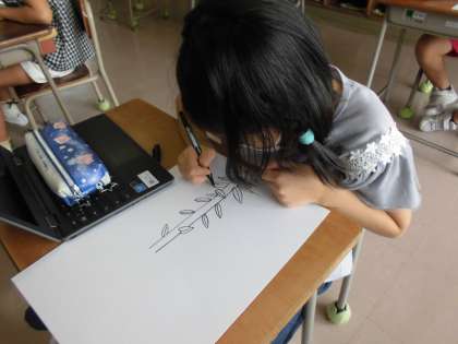 ペンで一発本番です。集中して描いています。