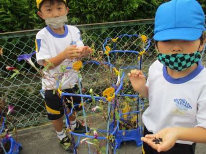 あさがおの種をとりました。たくさん種がとれて、嬉しそうな子供たちでした。