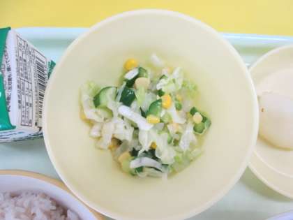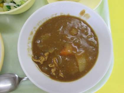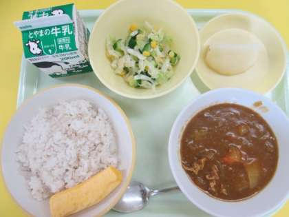 13日(火)今日の献立 公開日 2022/09/13 更新日 2022/09/13 給食室 ・麦ごはん ・牛乳 ・カレーライス ・卵ロール ・コールスローサラダ ・梨 ※11時45分、検食終了。異常ありません。