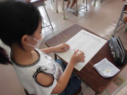 たし算2(繰り上がりのある足し算)です。確実に、速く計算できるようにがんばっています。